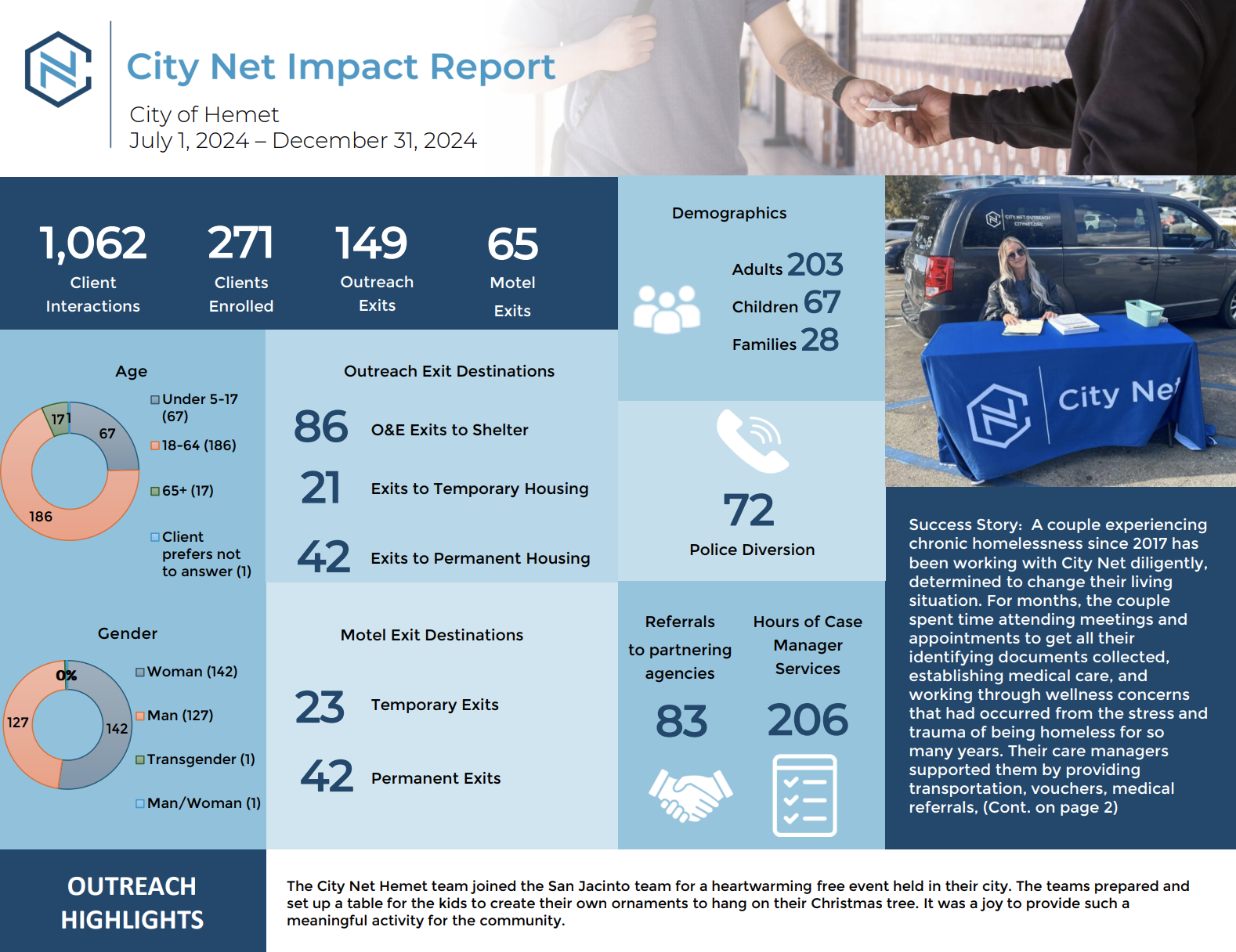Our City Net Riverside Team is currently only enrolling new clients during our daily outreach and engagement efforts. If an individual is already connected to services, they can reach out to their case manager directly. You may also reach us at the Contact Us link in our footer below.